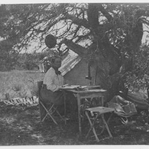 Florence Merriam Bailey was one of the first nationally recognized female ornithologists of her time and dedicated her life to educating the public about the vitality and protection of birds. As a student, she penned the first of many articles arguing against the fashionable use of bird feathers and wings as adornment. At age 26, she published her first book, Birds through an Opera-Glass, which was widely regarded as the first modern traditional bird guide. She co-organized early Audubon Society chapters and became the first female associate of the American Ornithologists Union. Her tireless role in advocating against the systematic devastation of seabirds and wading birds led in part to the congressional authorization of the Lacey Act of 1900. Bailey wrote over 100 articles for several ornithological journals and 10 books, including Birds of New Mexico–for which she was honored with the Brewster Medal. With her husband, Vernon Bailey, a U.S. Biological Survey naturalist, she traveled extensively throughout the American West to explore little-known flora and fauna. Bailey’s unwavering love of nature and remarkable powers of observation, combined with a talent for illustrative writing and a high reverence for science, inspired others to discover the diversity and value of living birds.