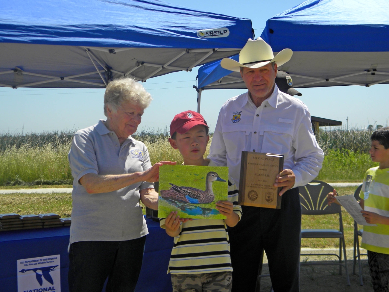A child receives an award during the 2012 Junior Duck Stamp awards ceremony