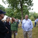 Former Director of the Natural Resource Department for the Mashpee Wampanoag Tribe Chuckie Green, speaks with former Secretary of the Interior Sally Jewell and Service Northeast Regional Director Wendi Weber at a 2015 cottontail conservation celebration.