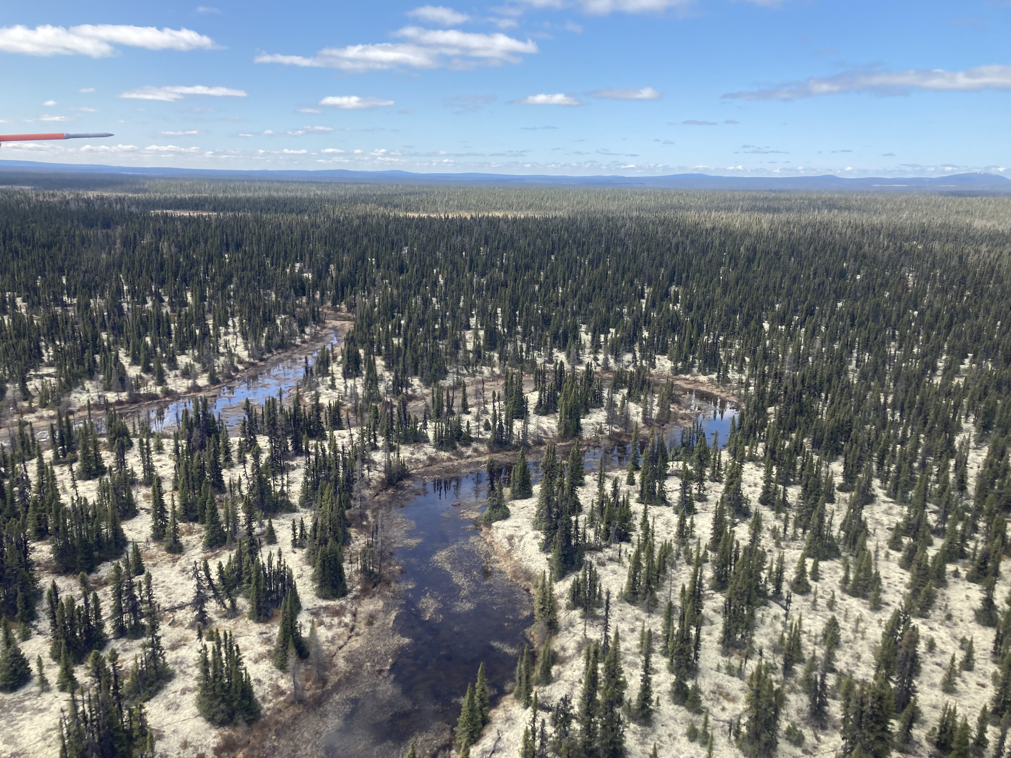 The seemingly endless expanse of the boreal forest in Labrador underlaid by a green-gray carpet of lichen. This picture was taken during the 2023 Waterfowl Breeding Population and Habitat Surveys.