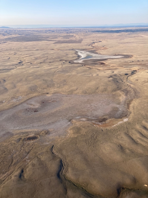 The aerial view from the Waterfowl Breeding Population and Habitat Survey over Malta, Montana is very dry, with few wetlands.