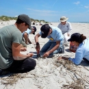 Volunteers and interns, including Melanie Cucunato, plant seabeach amaranth seeds at Cape May National Wildlife Refuge in New Jersey.