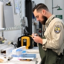 Biological science technician Andreas Raisch of the Lodi Fish and Wildlife Office prepares collection tubes for ovarian fluid samples to be taken from female Chinook salmon at the California Department of Fish and Wildlife’s Feather River Fish Hatchery, to check for any potential disease-causing agents before the eggs are incubated. Each year, the multi-agency San Joaquin River Restoration Program releases more than 200,000 juvenile spring-run Chinook from the hatchery into the San Joaquin River in an effort to restore a self-sustaining population of the endangered fish to its historic habitat.