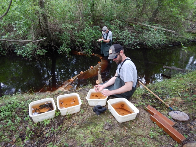 Biologists sample for blackbanded sunfish in a New Jersey stream.