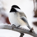 A black-capped chickadee wintering in Anchorage, Alaska.
