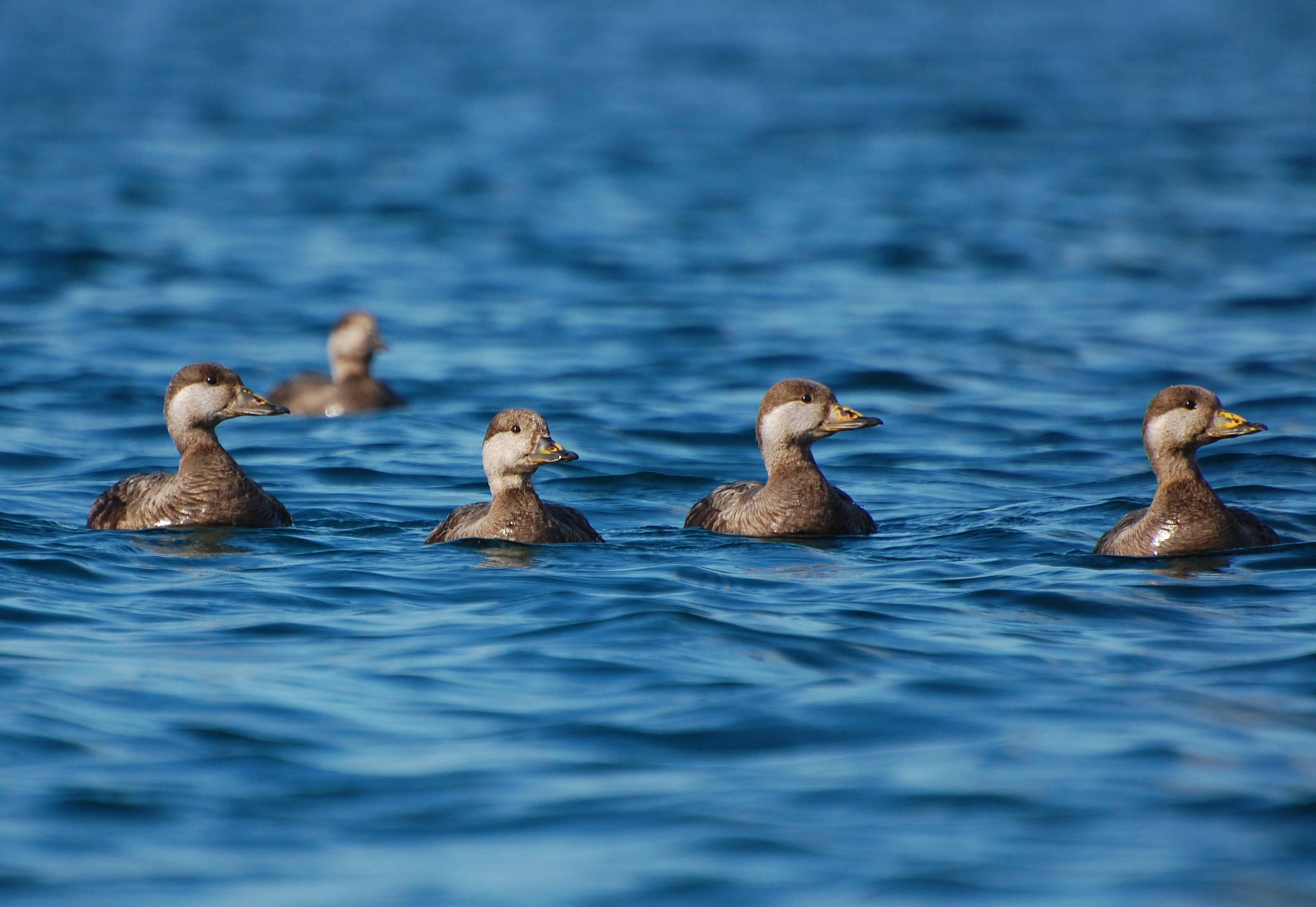 Black Scoters swimming side by side in a line, Izembek National Wildlife Refuge
