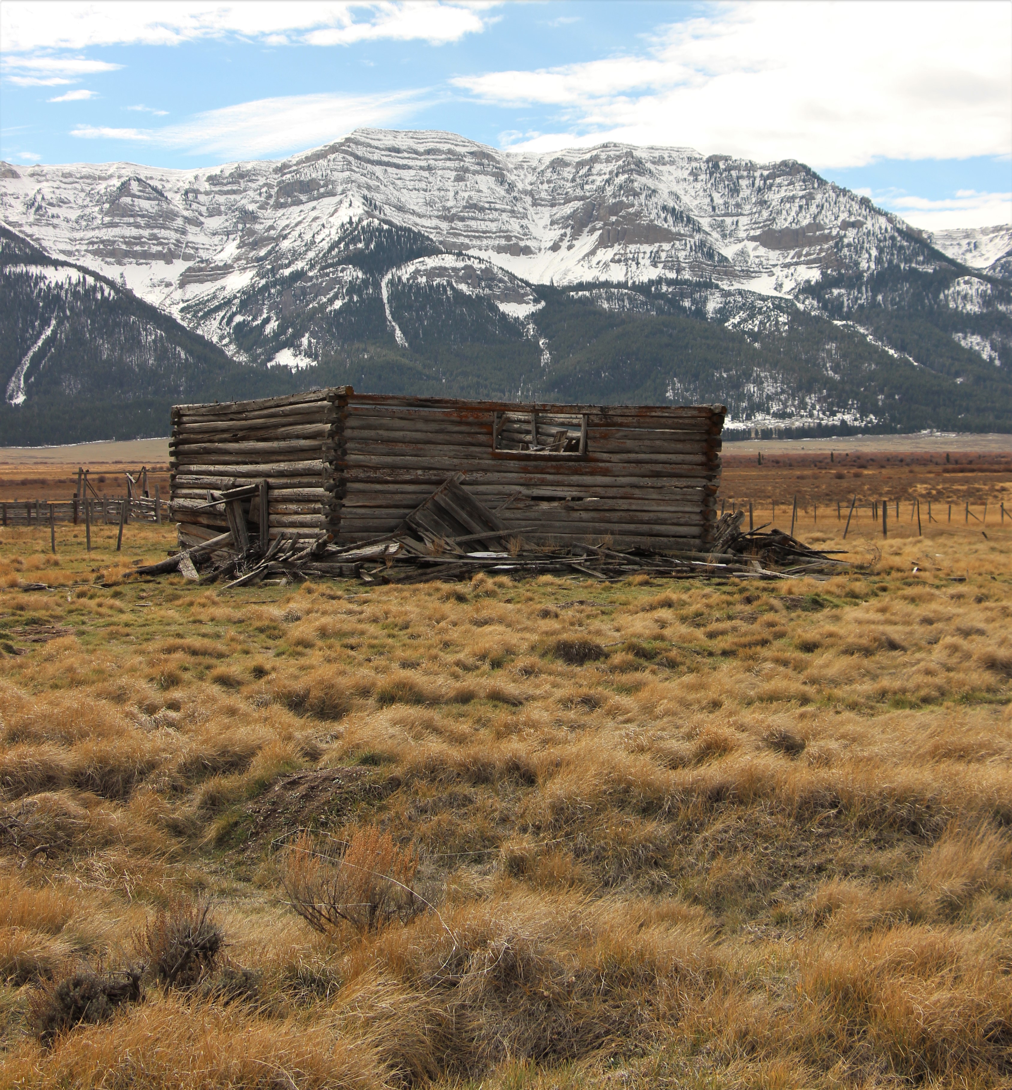 A view of the old Buck Homestead from the 1930s with the Centennial Mountains in the background at Red Rock Lakes National Wildlife Refuge. Photo by Cortez Rohr/USFWS