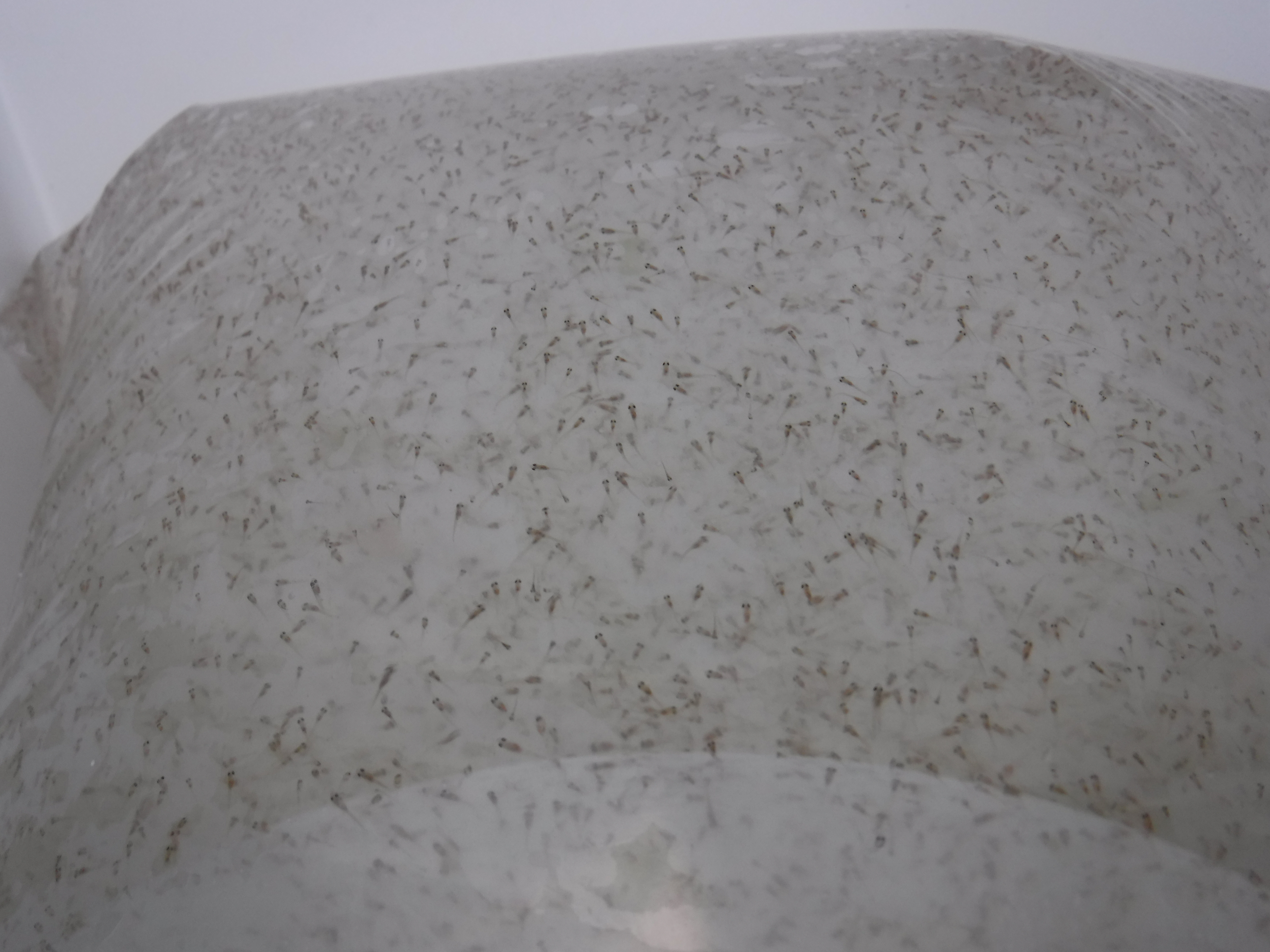 One of the 68 bags of miniscule burbot larvae that was transporter into Canada for release.