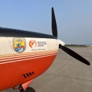 The front end of a Cessna 206 airplane used in the 2023 Waterfowl Breeding Population and Habitat Surveys.
