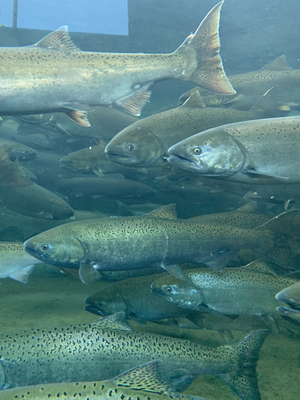 adult Chinook salmon swimming at Winthrop National Fish Hatchery
