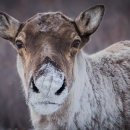 Closeup of a caribou head with snow on its nose from foraging for lichens. Photo: Kent Miller/NPS.