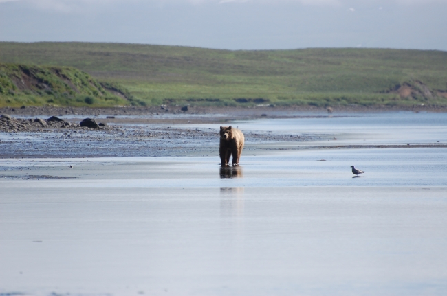 A coastal brown bear in Kinzarof Lagoon at Izembek National Wildlife Refuge in Alaska.