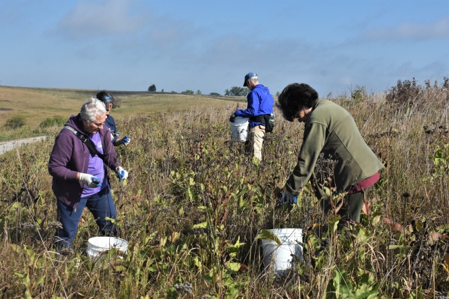 Volunteers collect native tallgrass prairie seed at Neal Smith National Wildlife Refuge in Iowa.