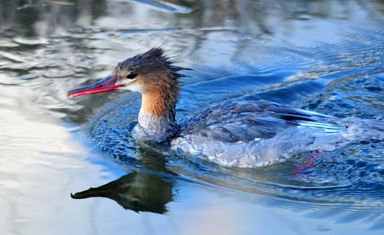 A common merganser swims at Seedskadee National Wildlife Refuge in Wyoming.