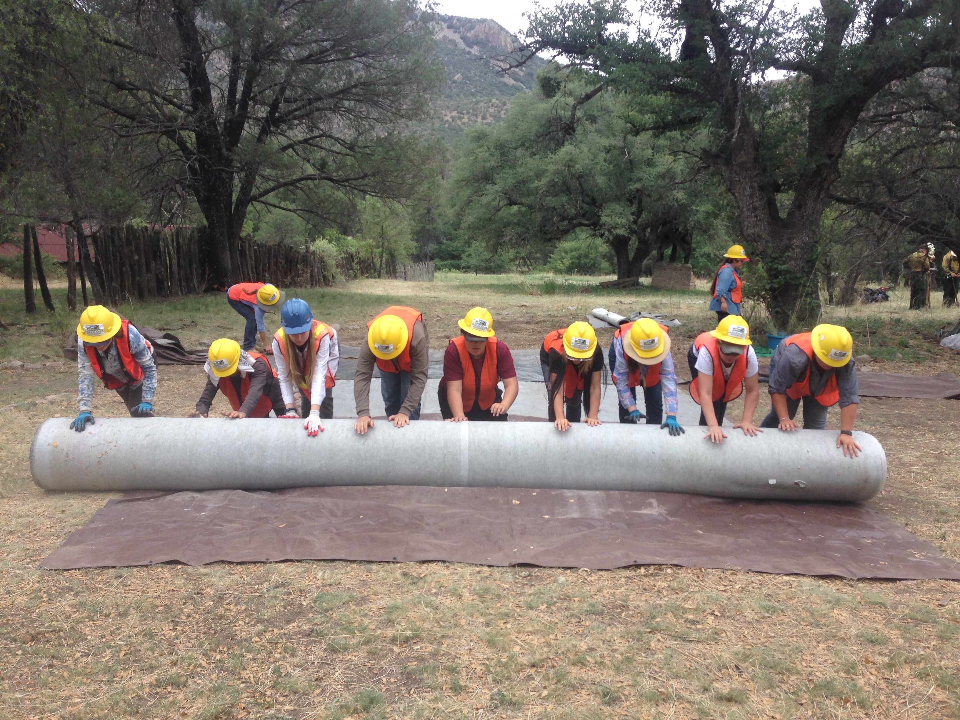 Crew unrolls a pond liner for Chiricahua Leopard Frog habitat restoration.