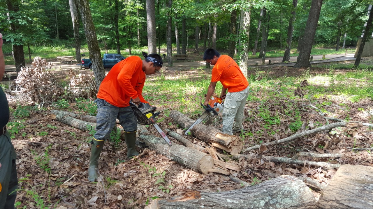 2017 CYCC students getting hands-on experience using chainsaws. This photo is used with permission by the Mississippi Band of Choctaw Indians and for the purpose of this article only. For reuse of this photo, please contact the Mississippi Band of Choctaw Indians.