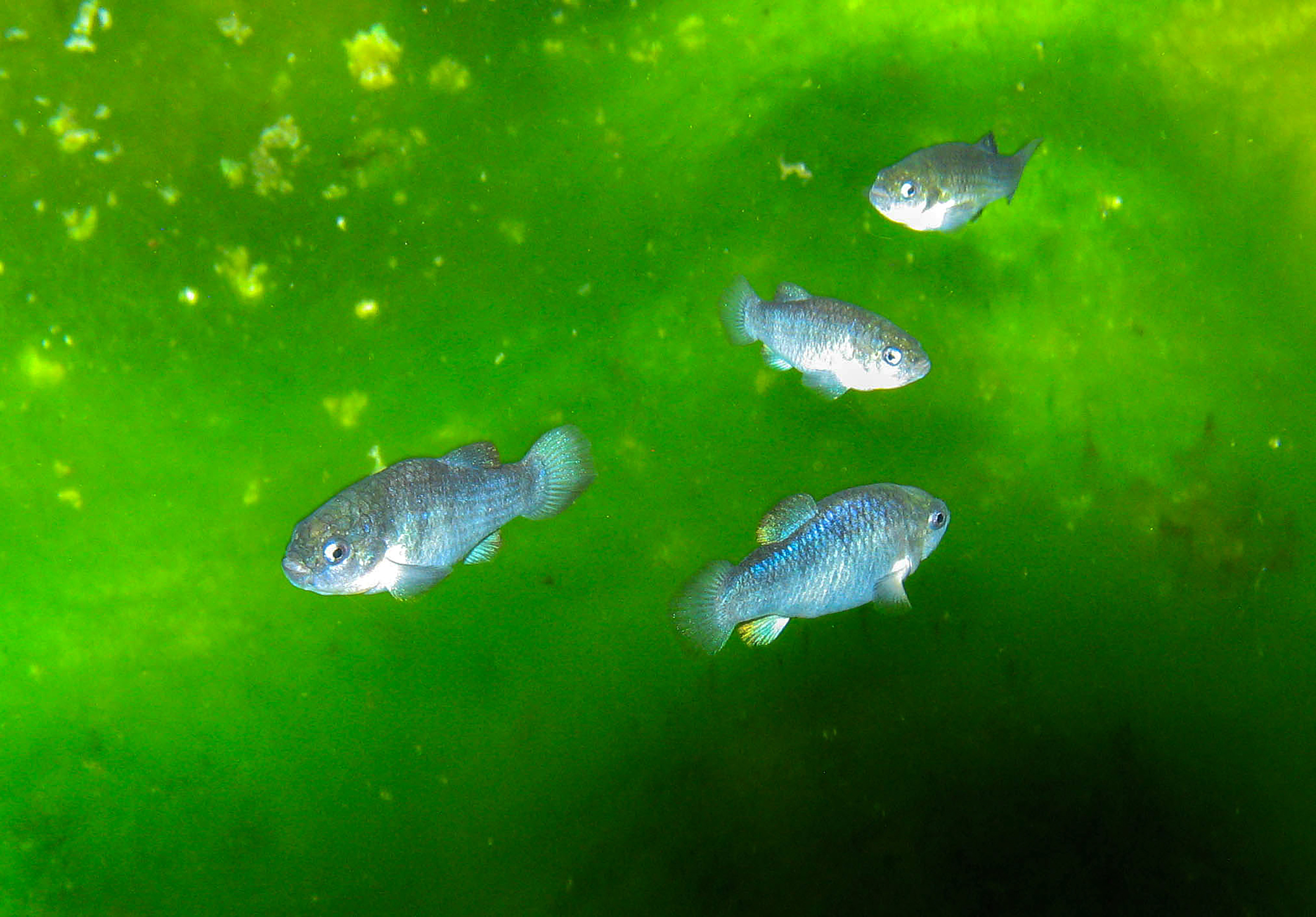 Devils Hole pupfish swim in the refuge tank