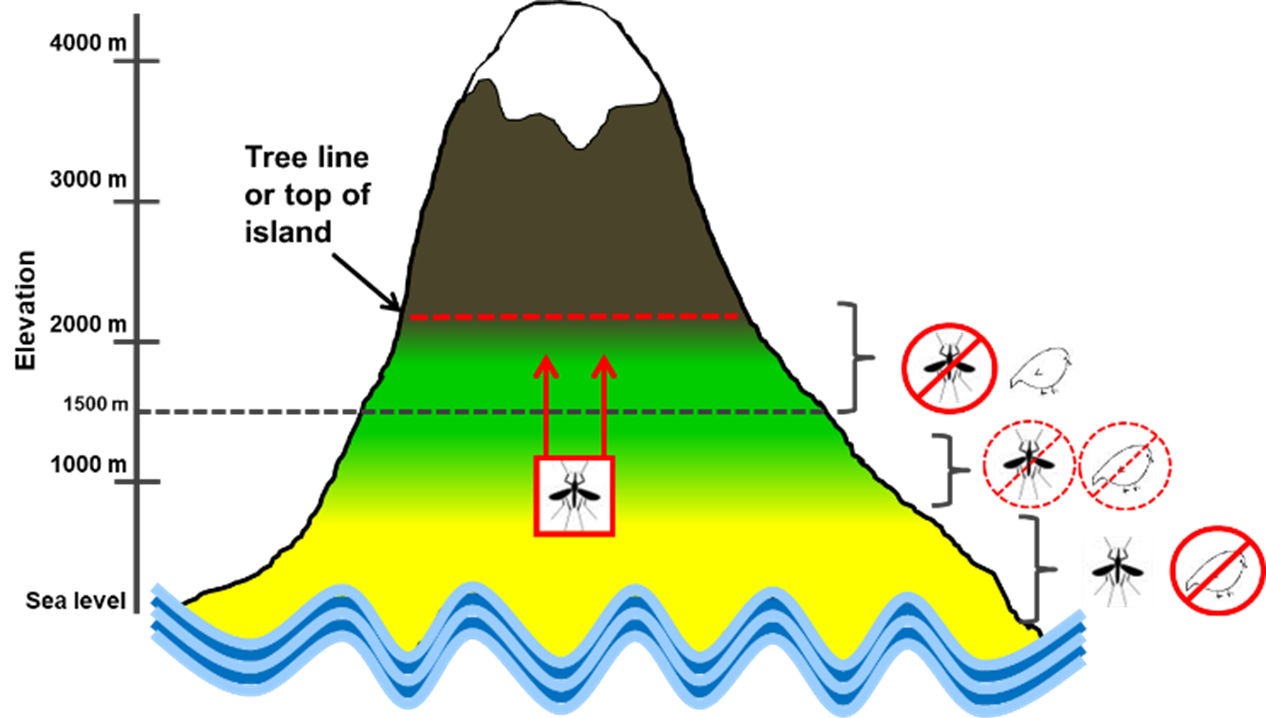 Distribution of native birds and non-native mosquitoes that transmit avian malaria relative to temperature and elevation in Hawai‘i
