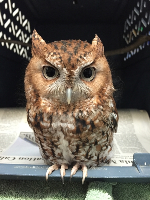 This eastern screech owl was admitted for care as a nestling to the Audubon Center for Birds of Prey. Due to the severity of the fracture, he was deemed non-releasable and has been a wonderful addition to their education program teaching adults and children how important screech owls are to the environment. Photo Courtesy of Beth Lott, Audubon Center for Birds of Prey.
