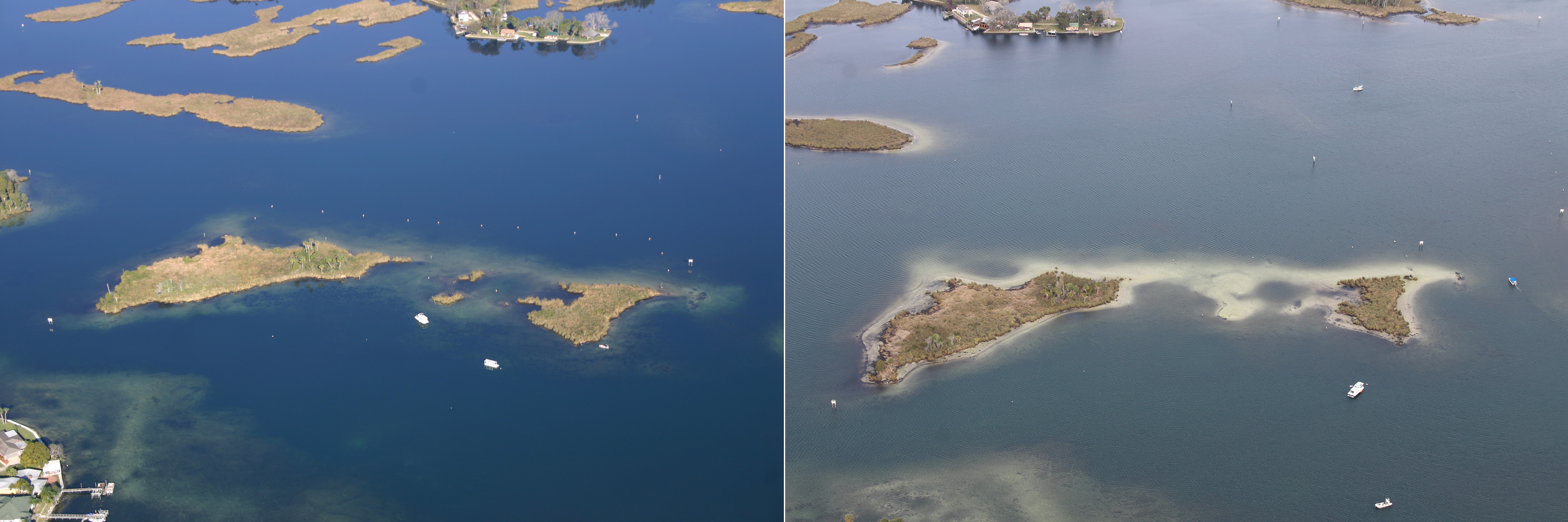 Warden Key and the Crystal River National Wildlife Refuge Complex the island is a part of have experienced such drastic effects of sea level rise that managers have sought new ways to protect wildlife. Seen here, the course of just 12 years. Photo by Joyce Kleen