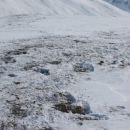 Caribou have been dining here, shoveling and digging through the snow for lichens. Photo: Kyle Joly/NPS.