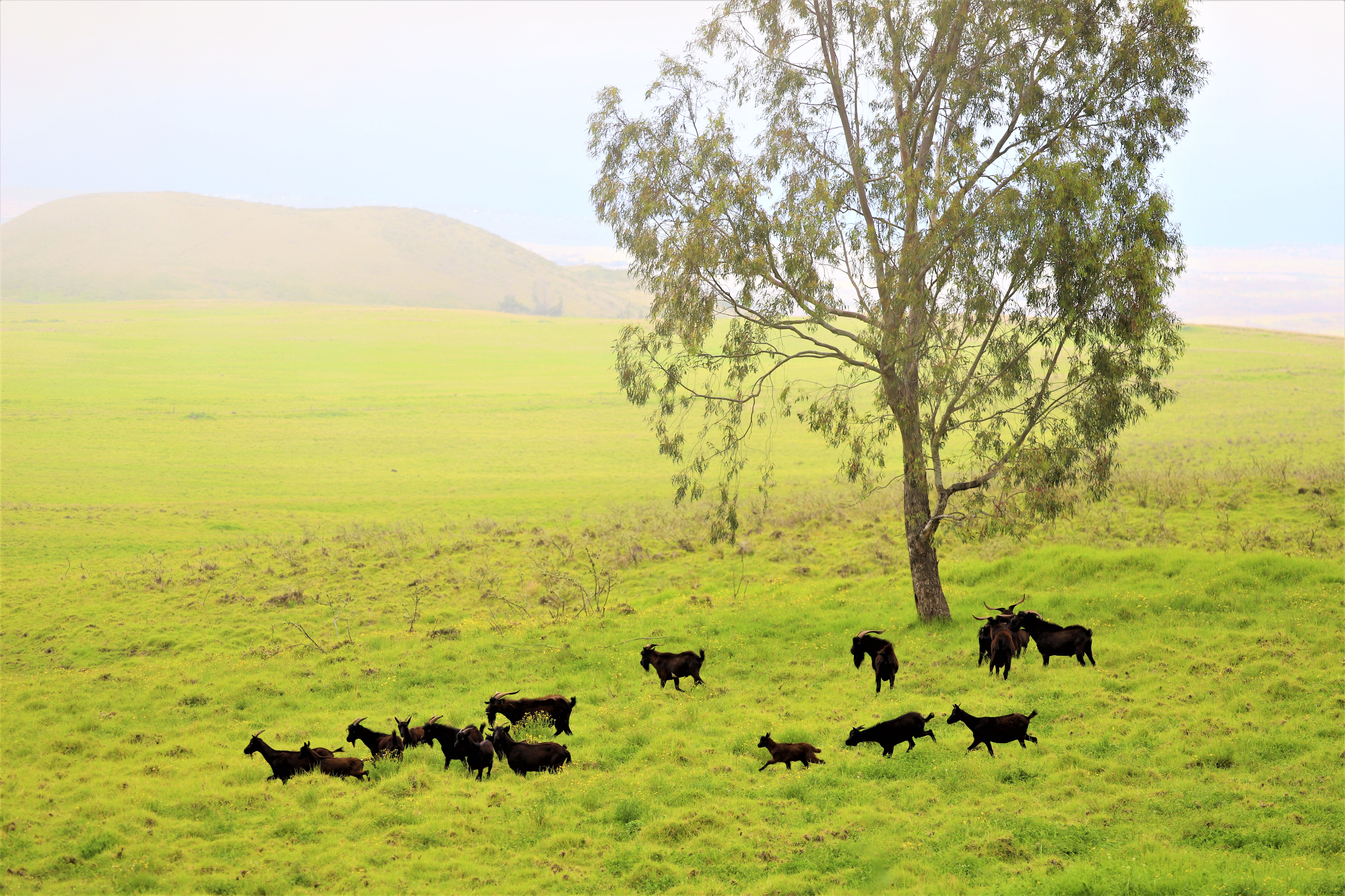 Herd of feral goats on Hawaiian landscape. Goats and other feral mammals provide hunting opportunities across the Hawaiian Islands, but can have negative impacts for native species.