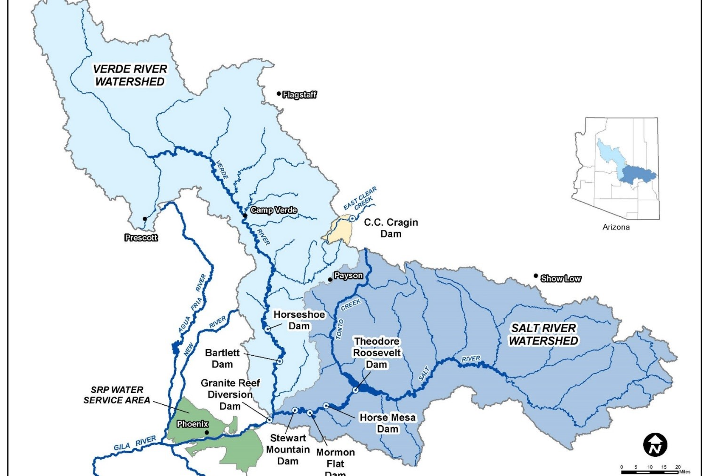 Figure 3-1: Salt-Verde watershed and dams operated by SRP.