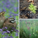 Fire dependent species including northern bobwhite quail; a fern at Rachel Carson National Wildlife Refuge in Maine; and native prairie flowers at Windom Wetland Management District in Minnesota