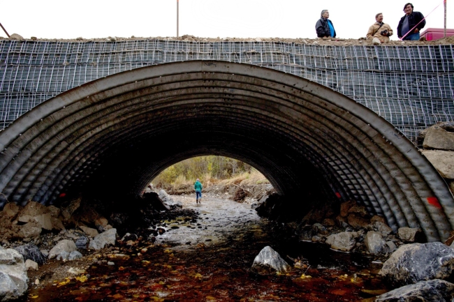 A fish-friendly culvert being completed in Tyonek, Alaska.
