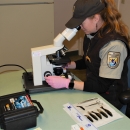 A U.S. Fish and Wildlife Service Veterinarian inspects the health of Quilcene National Fish Hatchery coho salmon.