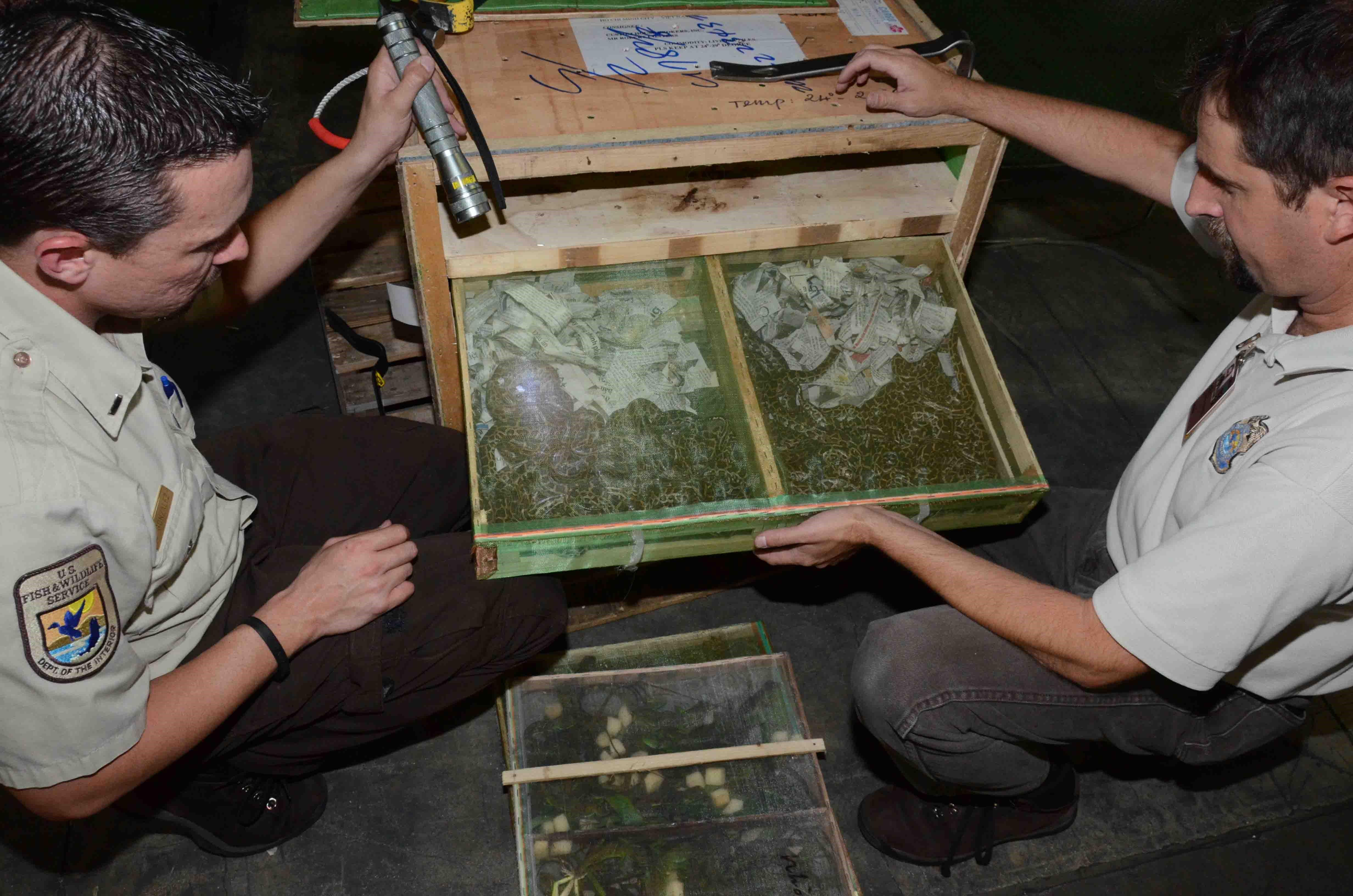 U.S. Fish and Wildlife Service wildlife inspectors examine live wildlife shipments and enforce CITES transport requirements.