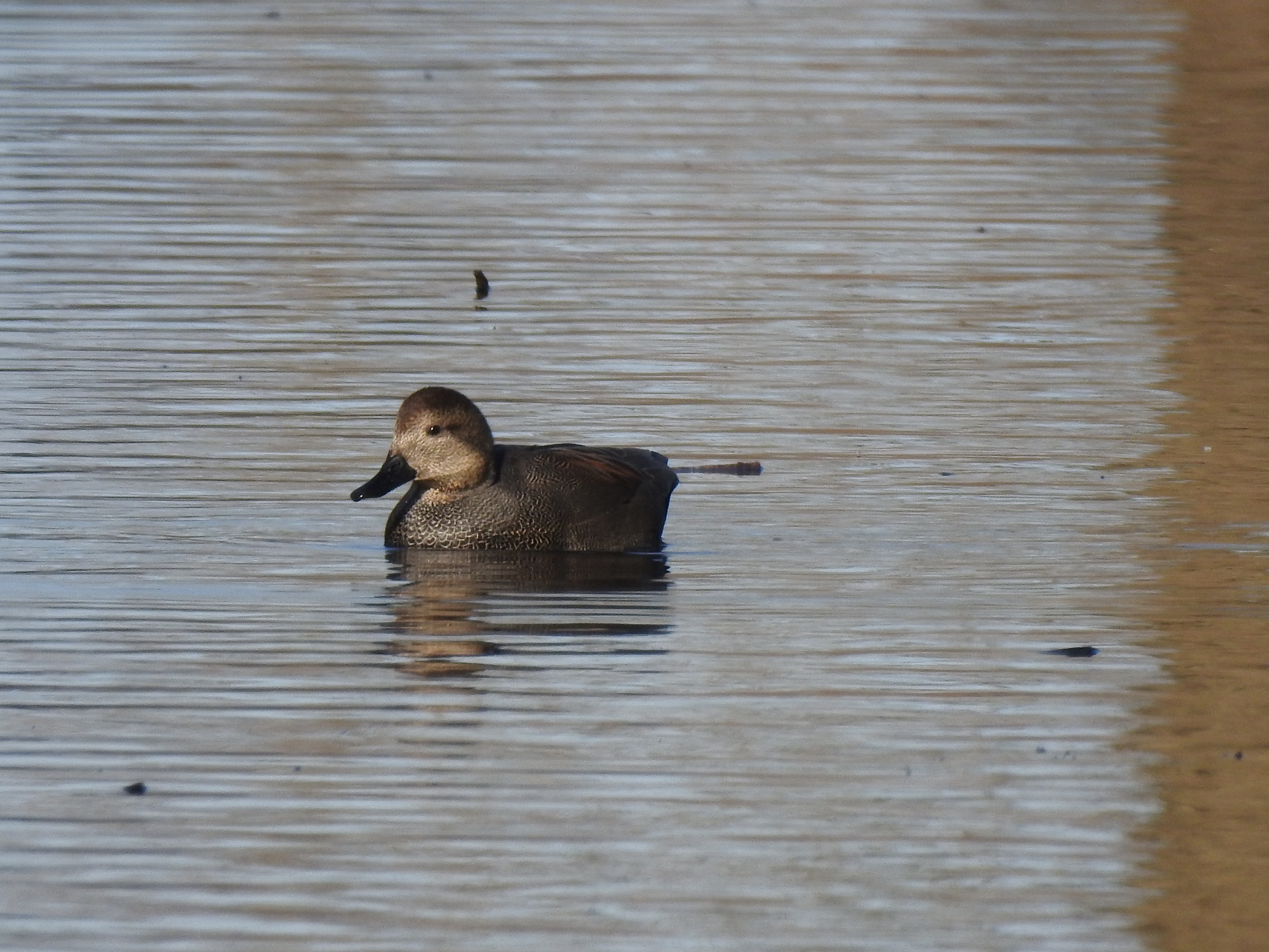 The male Gadwall’s understated gray-brown coloring can make this common duck easy to overlook, but other ducks should stay alert to this species as they often snatch food from diving ducks as they reach the water's surface.