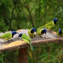 Green jays at a feeder at Santa Ana National Wildlife Refuge in Texas.