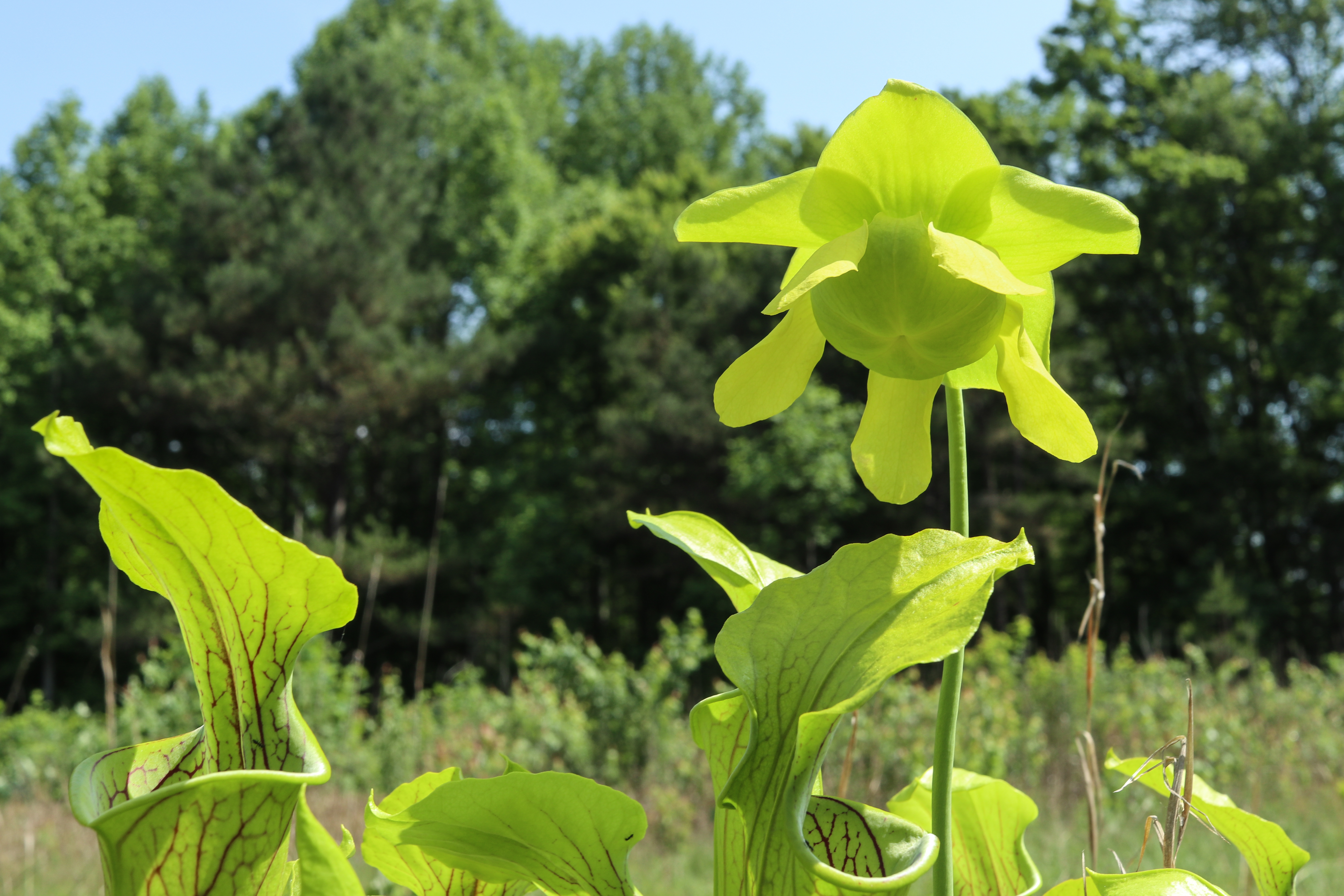 To evaluate the effectiveness of their management, every two years The Nature Conservancy monitors the rare green pitcher plant that grows on the site.