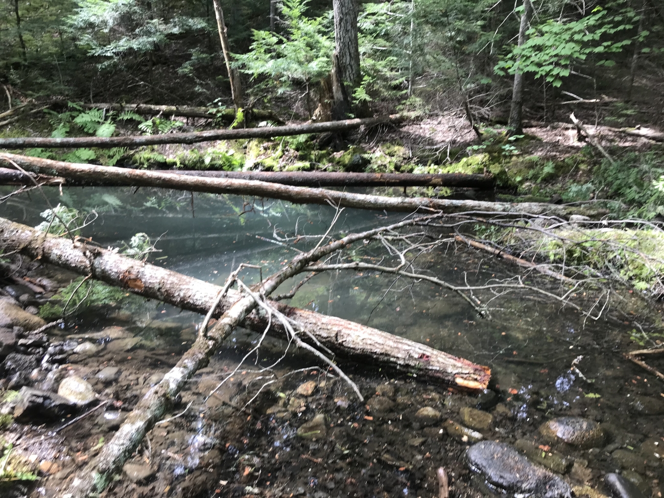 Example of excavated groundwater-fed pool and placement of large wood in side channel of Narraguagus River.