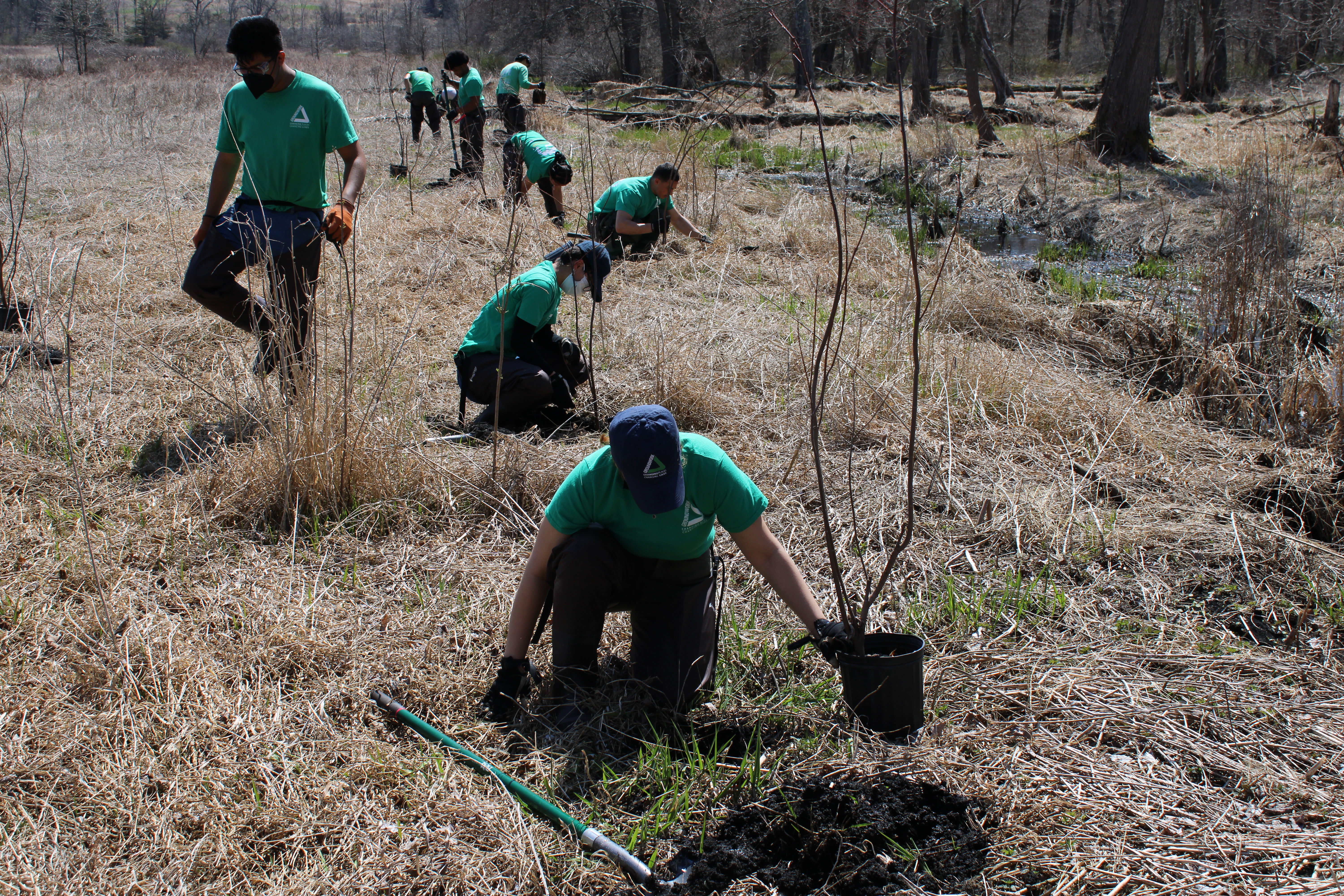 Youth from Groundwork Hudson Valley’s Green Team plant trees at the Wallkill River NWR in New Jersey.
