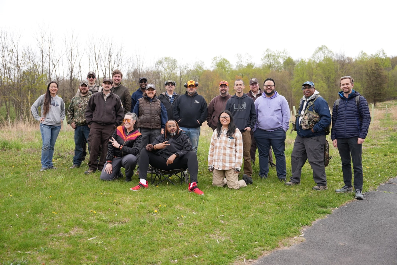 Group of people stand for a photo as a part of the refuge's mentored turkey hunt