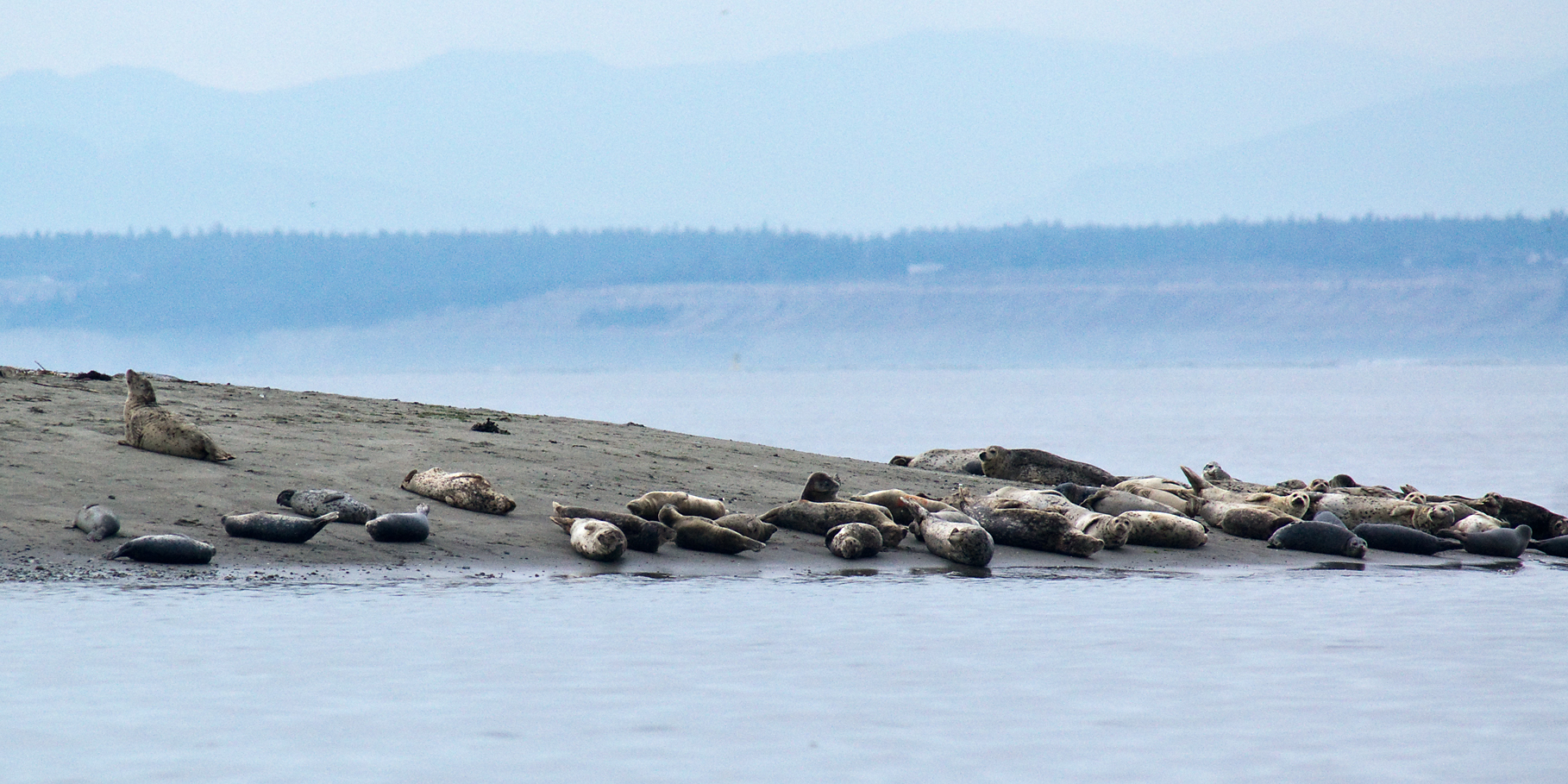 Harbor and Elephant Seals Hauled out on a Beach in Dungeness NWR