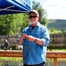 Hatchery Manager Chris Pasley prepares a fishing rod for use.