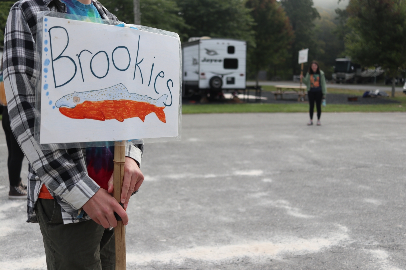 High school students in Yancey County, N.C. wait for elementary-school students to arrive so they can lead them through the Toes in the Toe education stations.