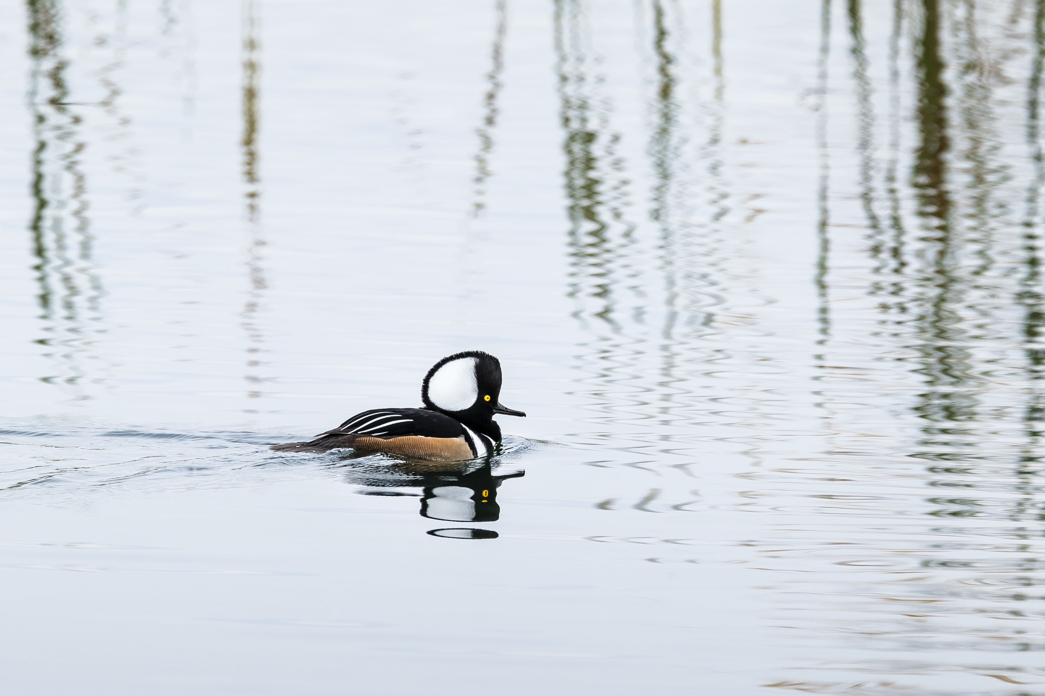 Hooded merganser on wetland