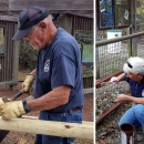 Left: Wally Sternberg replaces a rotted landscape timber at Big Branch Marsh National Wildlife Refuge. Right: Carolyn Sternberg primes a fence at Atchafalaya National Wildlife Refuge. Both refuges are part of the Southeast Louisiana National Wildlife Refuges Complex.