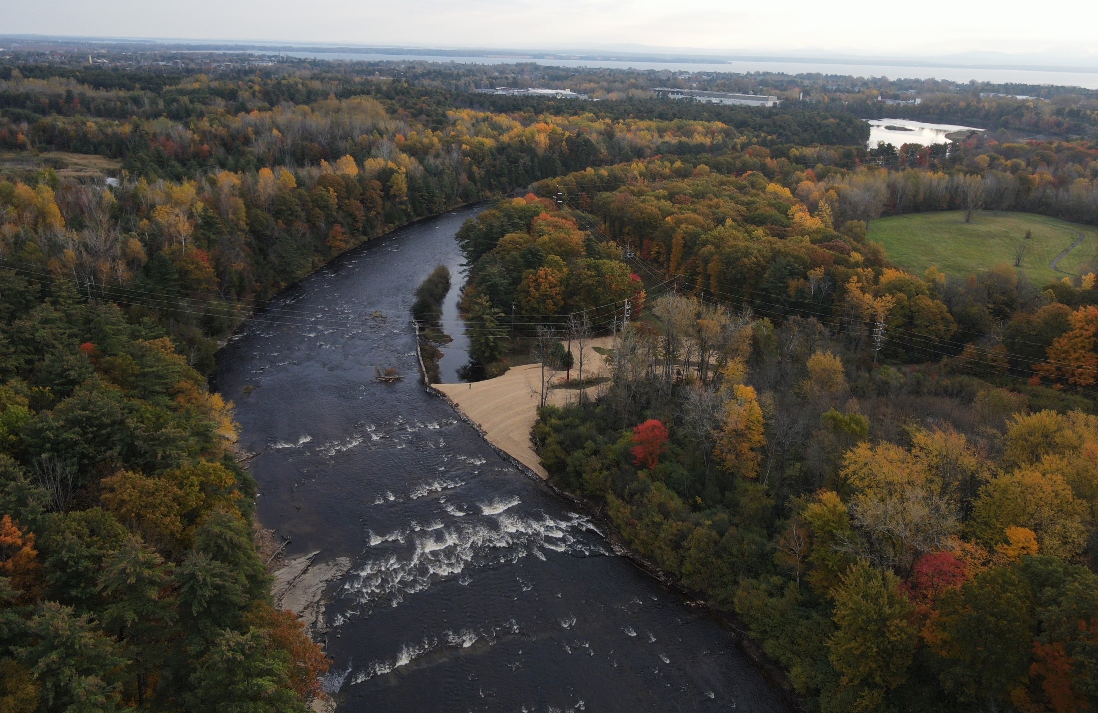 The Indian Rapids Dam after removal. With the dam gone, the rapids continue down the river uninhibited. (Credit: Jacob Fetterman/Trout Unlimited)