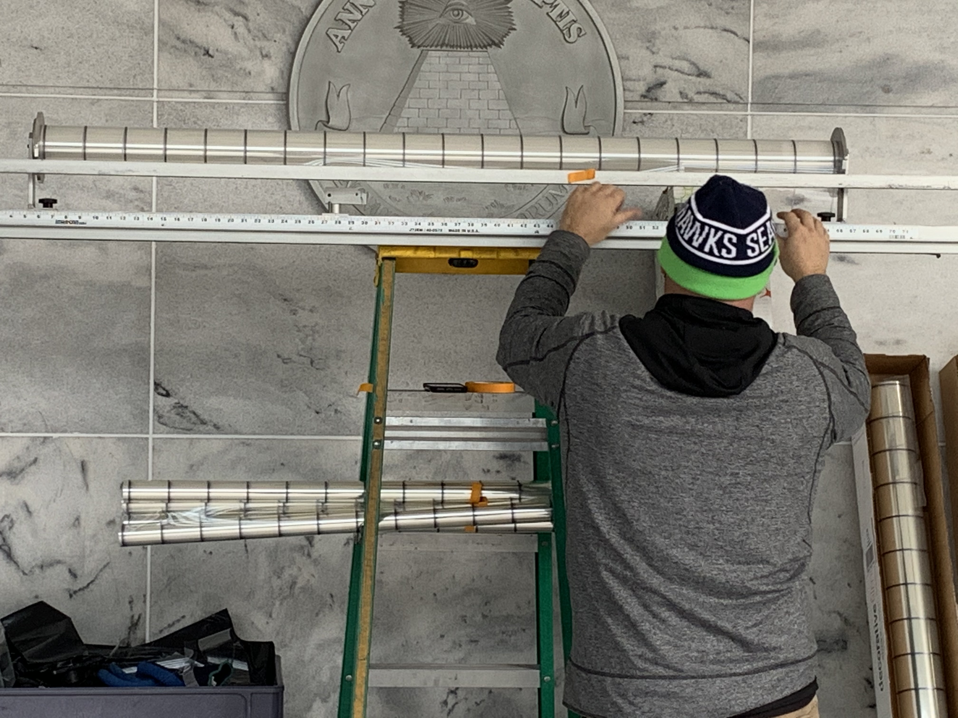 Installation of the bird-friendly glass on the 911 Federal Building.
