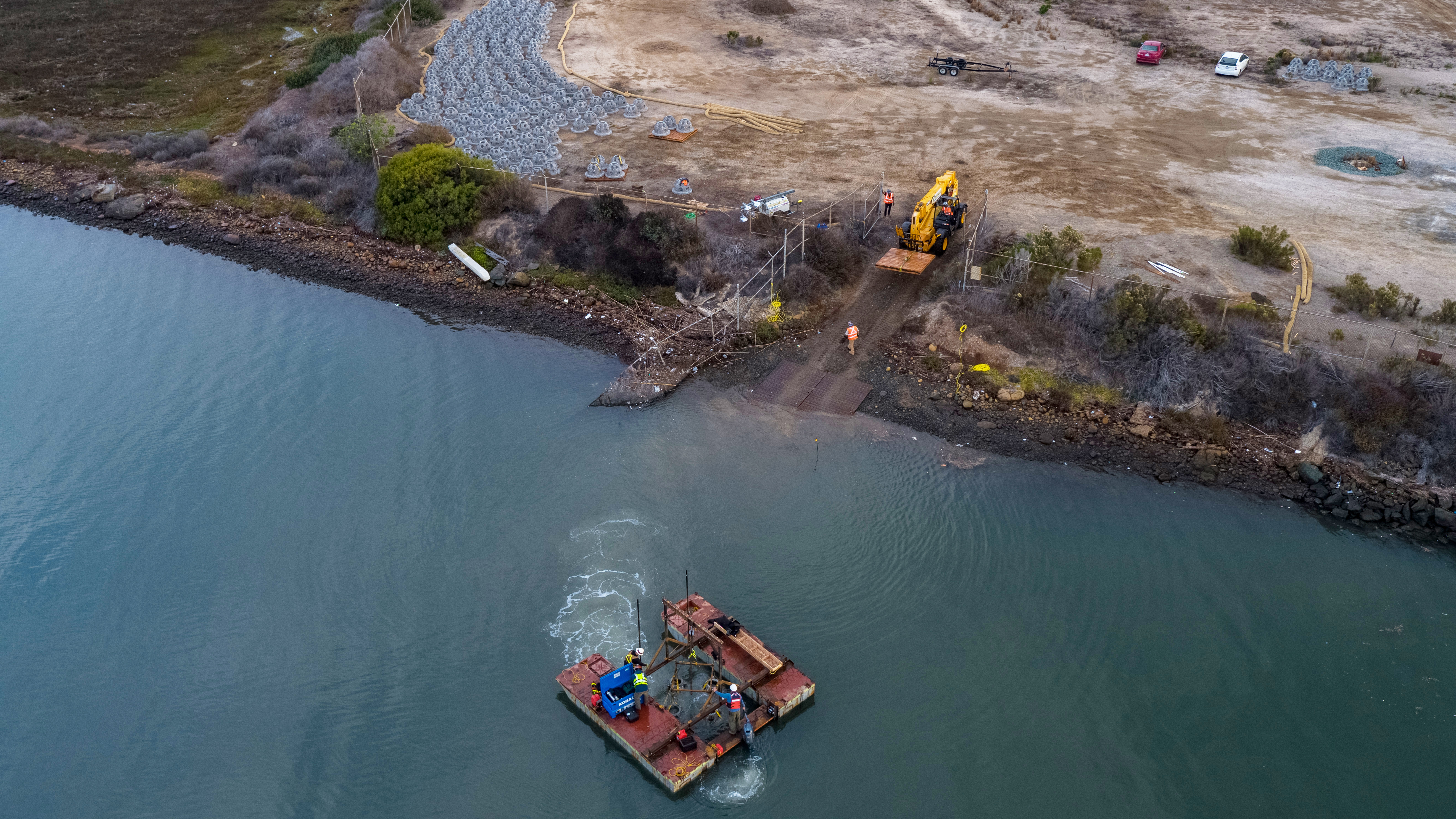 Workers begin installation of oyster "reef balls" at the port of San Diego.