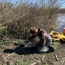 Refuge biologist Josh Hengel sets a rabbit trap as part of flood rescue efforts. The flooded rescue sites required watercrafts to reach.