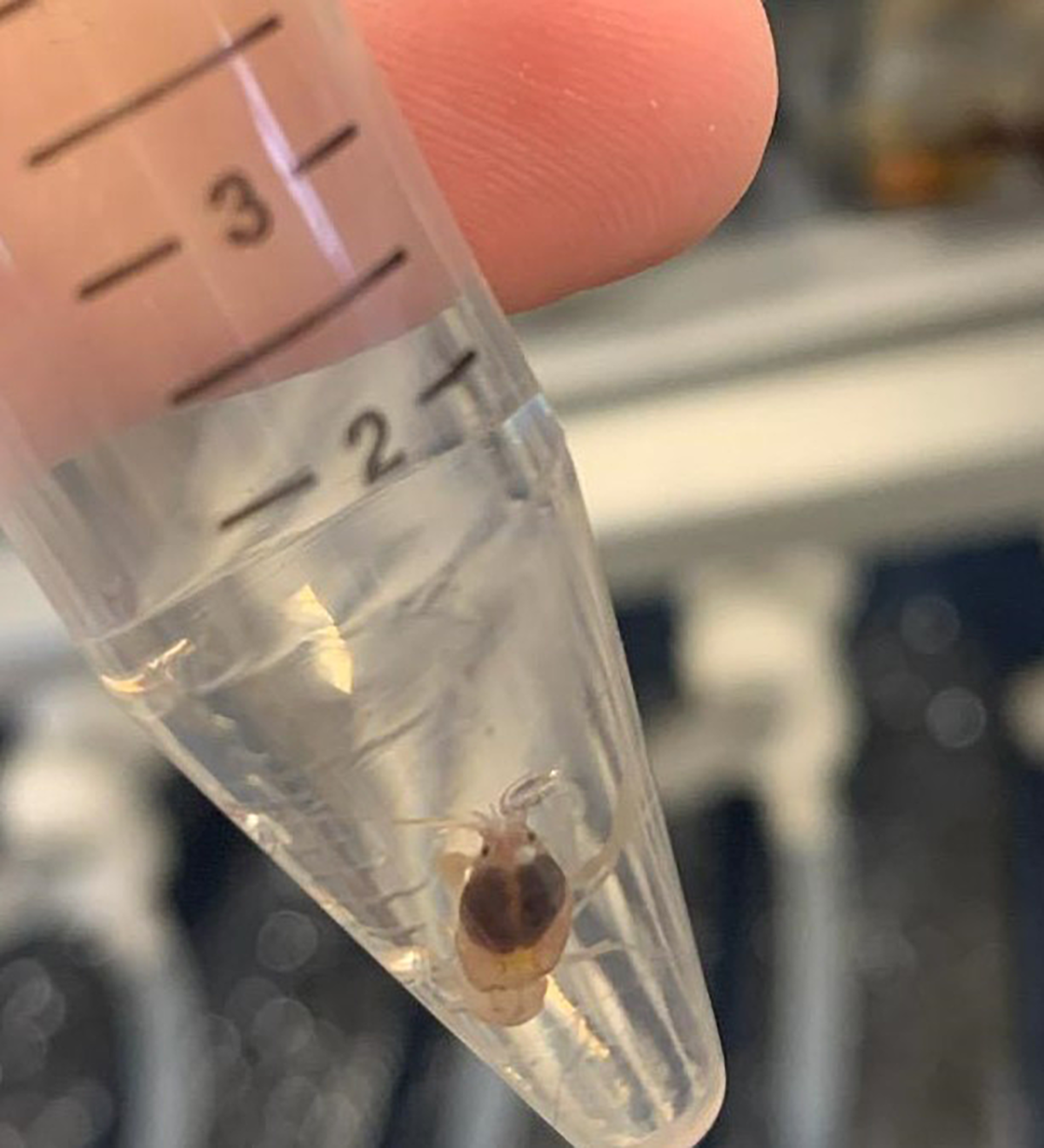 A juvenile Big Sandy crayfish is delicately collected in a vial.