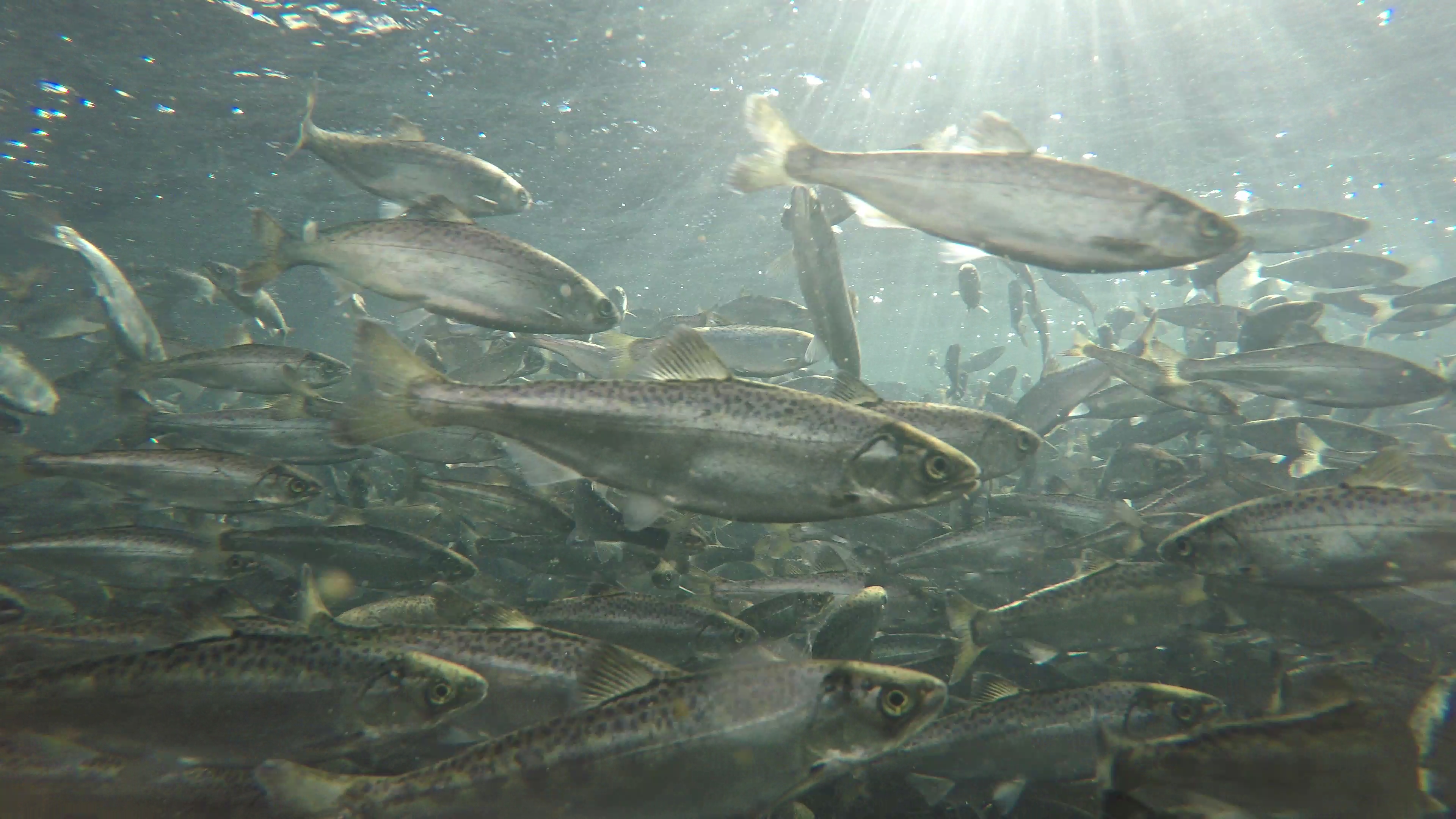 Chinook salmon swim in a raceway at the Coleman National Fish Hatchery. Each year Coleman NFH releases nearly 14 million fish into the Sacramento River system.