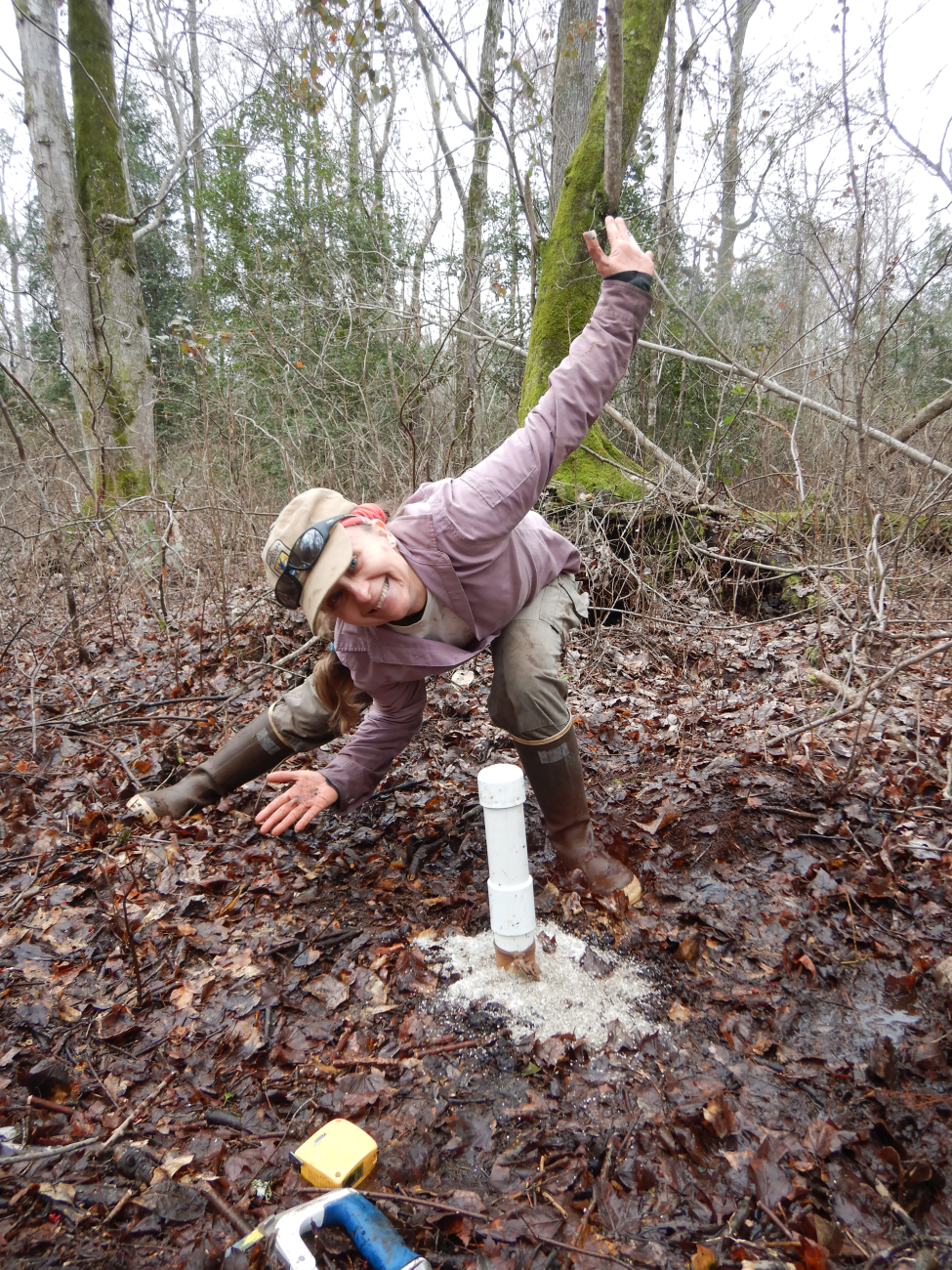 Balentine digs and installs groundwater wells throughout the swamp. She regularly checks each well to measure the water level.