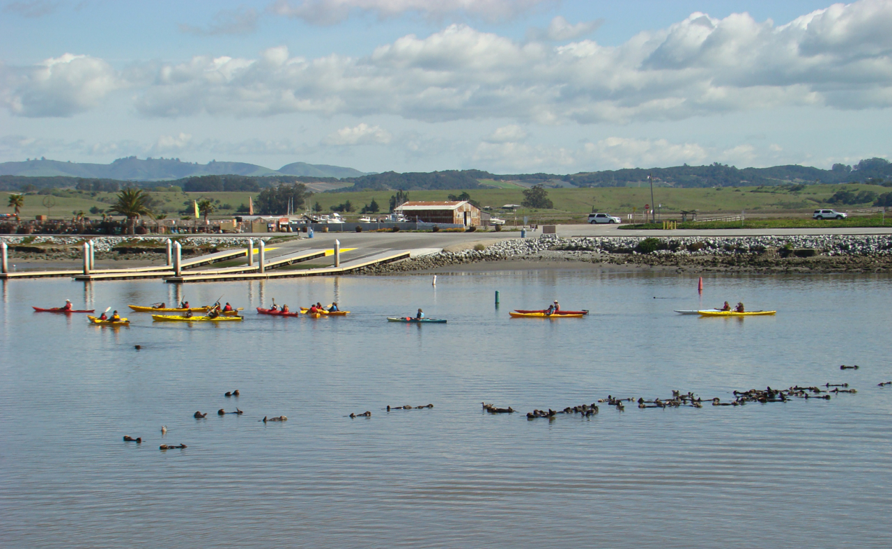 Kayakers should avoid disturbing resting sea otters by keeping a sufficient distance (at least 50 feet away is recommended), pass by parallel to the sea otters rather than pointing directly at them, and keep moving slowly but steadily past them. Photo by Lilian Carswell/USFWS.